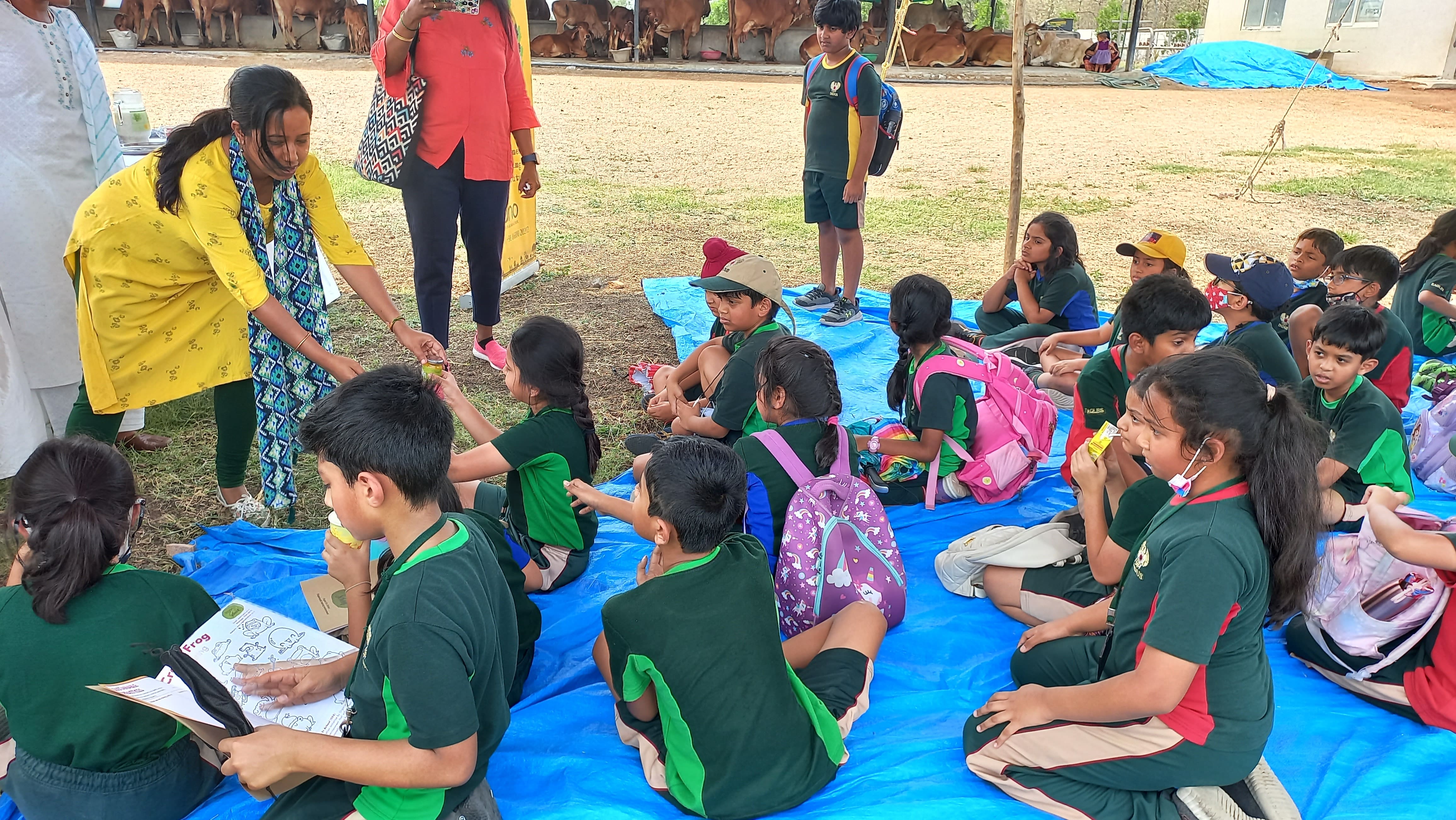 The children were given a small portion of GHEE prepared organically without adulteration as a token of appreciation. They also enjoyed the petting zoo which gave them a chance to interact with the animals.